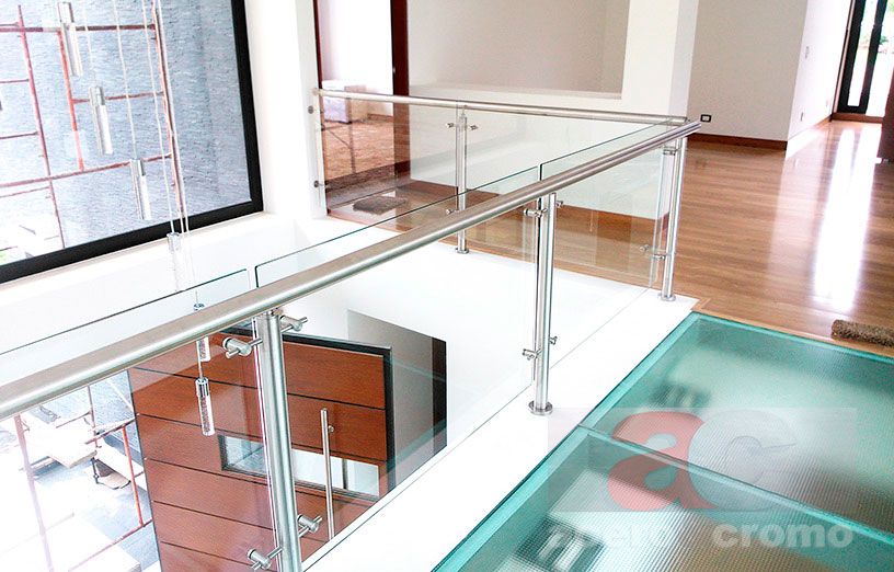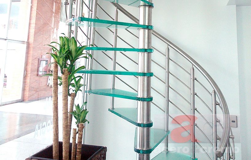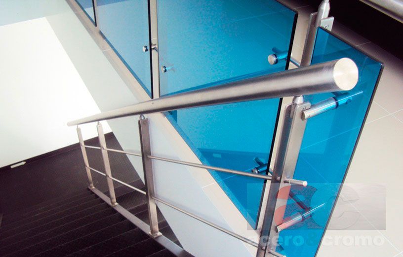 escalera en vidrio multi-laminado templado y acero inoxidable